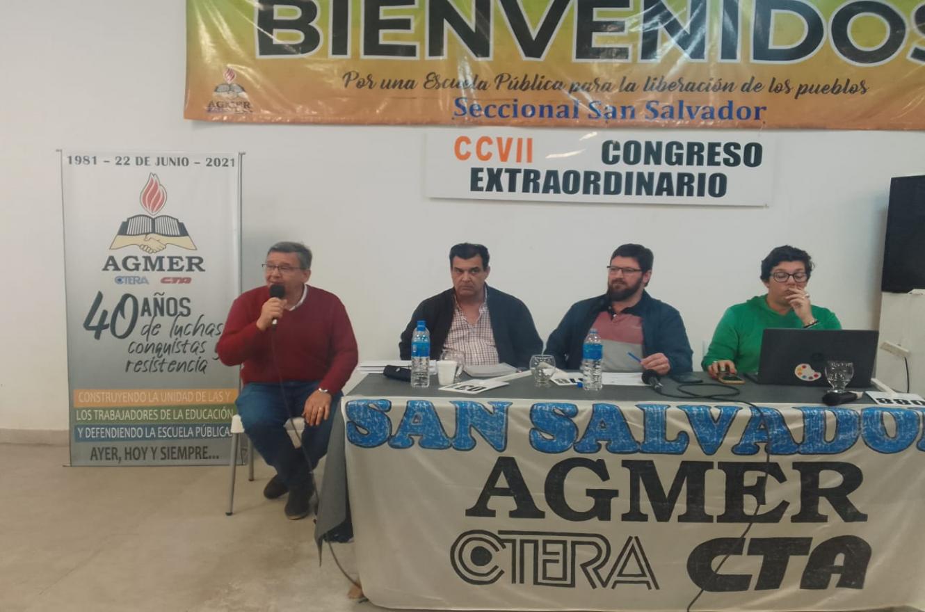 *El Congreso Extraordinario de la Asociación Gremial del Magisterio de Entre Ríos (AGMER), recordamos se reunió en San Salvador E.R. y a su término resolvió rechazar la oferta salarial presentada el pasado lunes por el gobierno de la Pcia. En ese sentido definió 4 jornadas de Paro (96 horas) para los días 1, 2, 6 y 7 de Agosto, con movilización provincial en la primera de las fechas. A su vez el Congreso de AGMER. calificó la propuesta de “insuficiente, distorsiva e inconstitucional”. (*24/julio/2024)