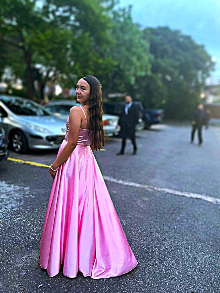 Lució espléndida con un vestido confeccionado por la modista Lidia Araujo, peinados Vicki y maquillaje de Pilar Ferrante, todas emprendedoras de Larroque.