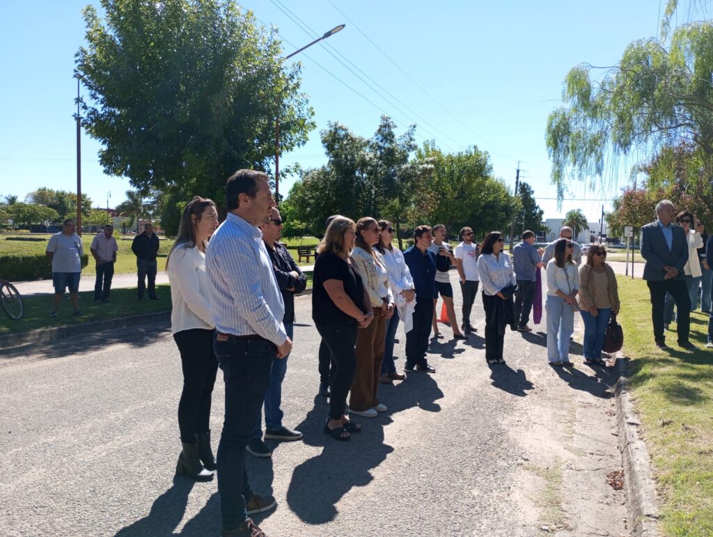 El acto a la hora 11 fue presidido por el intendente municipal Francisco Benedetti, acompañado por la vice-intendente Estela Petelin y el ex diputado nacional Atilio Benedetti. También funcionarios, concejales locales, representantes de organismos oficiales y publico en general.