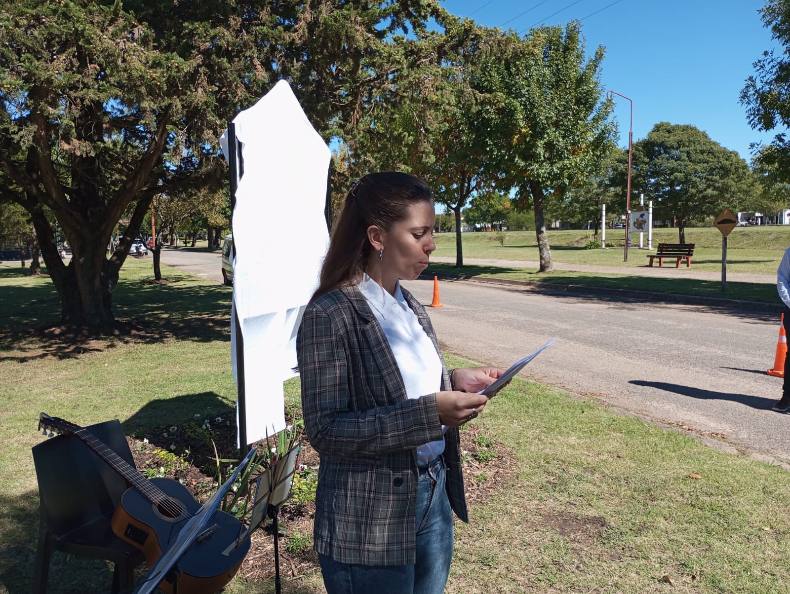 La profesora Pilar Larrosa tuvo a su cargo la conducción del cónclave y las palabras alusivas, reflexionando, recordando aquel Día trágico que cercenó durante 7 oscuros años, las Libertades del país.