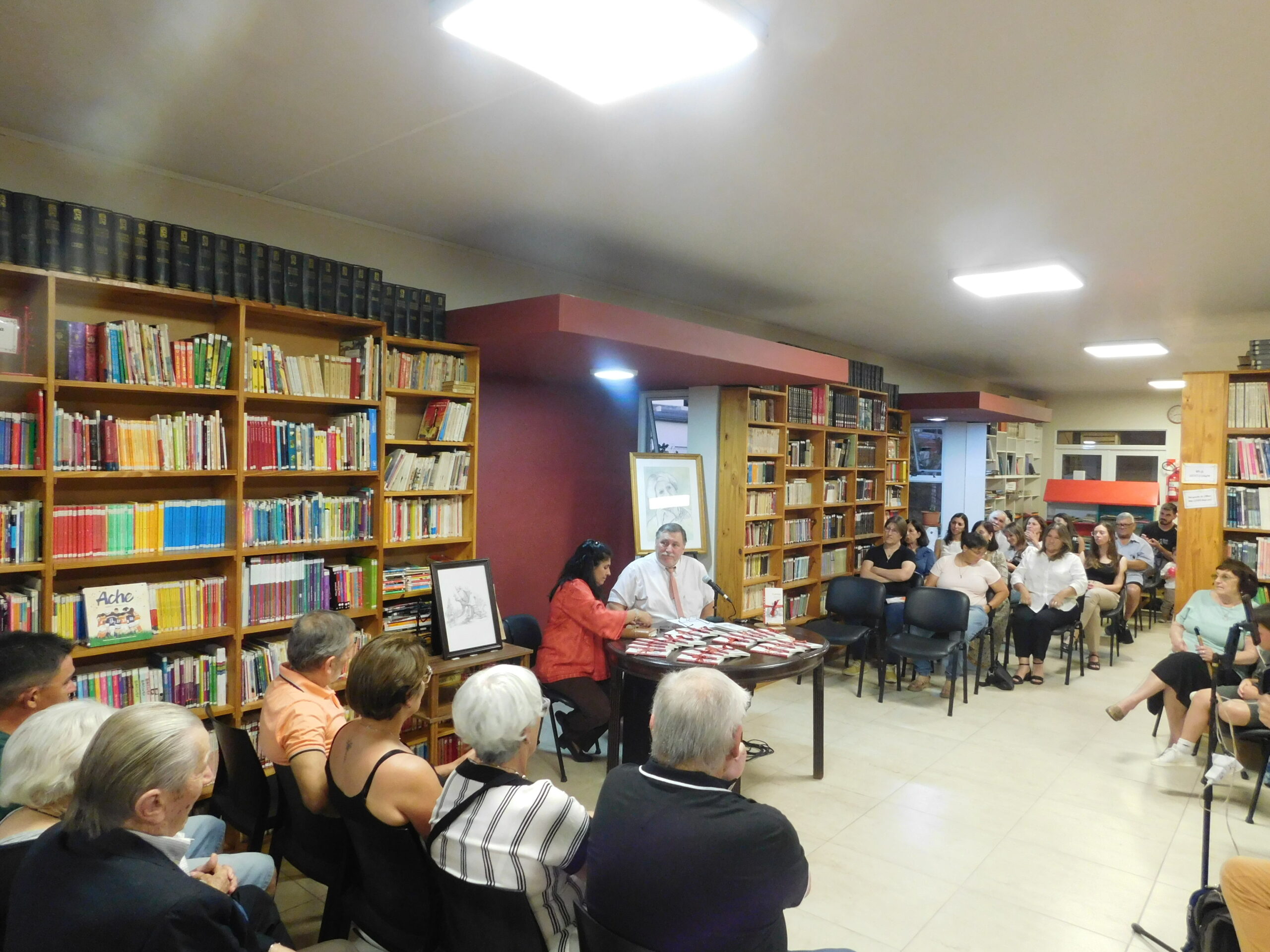 Instantes después cada uno de los escritores fueron pasando al frente siendo reconocidos con júbilo por el público, el regalo de un libro a la vez que firmaron un ejemplar especial para recuerdo de la Biblioteca Popular. Un libro además fue sorteado en uno de los tramos del encuentro.