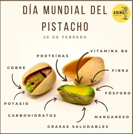 *Se celebra el *Día Mundial del Pistacho*, uno de los Frutos secos más sanos y mejor cotizados en todo el mundo. Es el fruto de un arbusto oriundo de la zona oriental del mar Maditerráneo.*