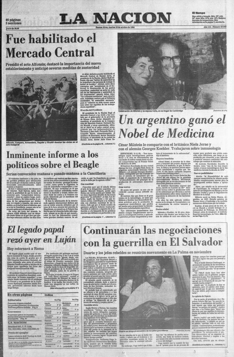 *1927 – Nació CÉSAR MILSTEIN, Bioquímico Argentino, Premio NOBEL de MEDICINA en 1984. Nació en BAHÍA BLANCA -Pcia. Buenos Aires- fue Premiado por su DESCUBRIMIENTO de las CÉLULAS MONOCLONALES, que Permiten Investigar sobre el Tratamiento del CÁNCER*.