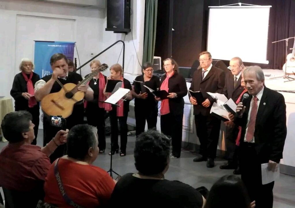 Como estaba previsto la noche del viernes 24 de octubre y a pesar de las inclemencias, un buen número de espectadores se diron cita para celebrar los 25 años del Coro municipal de adultos » Comunidad». La agrupación fundada y dirigida por Ricardo Gordo Elena, tuvo una historia ininterrumpida de canto comunitario. Cantores y cantoras vocacionales encontraron un lugar para recrearse, cantar, viajar, encontrarse con otros coros.