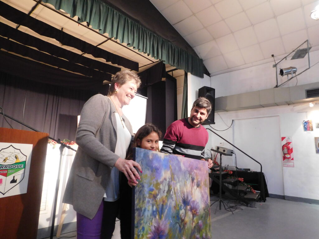La profesora G. Zagert, dirigió parte del acto e hizo uso de las palabras. También generosamente para la gente que acompañó los integrantes del taller, sortearon un hermoso cuadro cuya feliz acreedora fue una niña acompañada por su papá Fabián. En tanto el espacio artístico donó una de sus pinturas al Área de Cultura que fue recibida por su titular profesor Lauro Cichero.