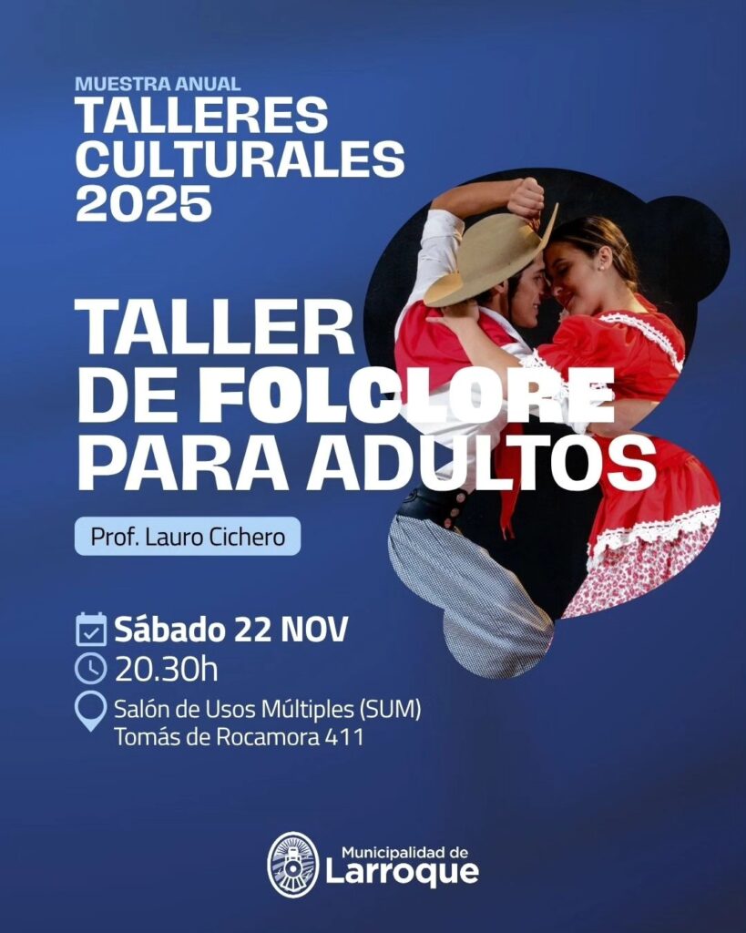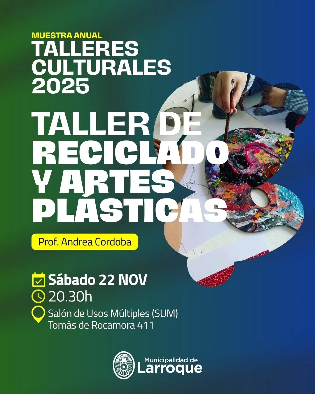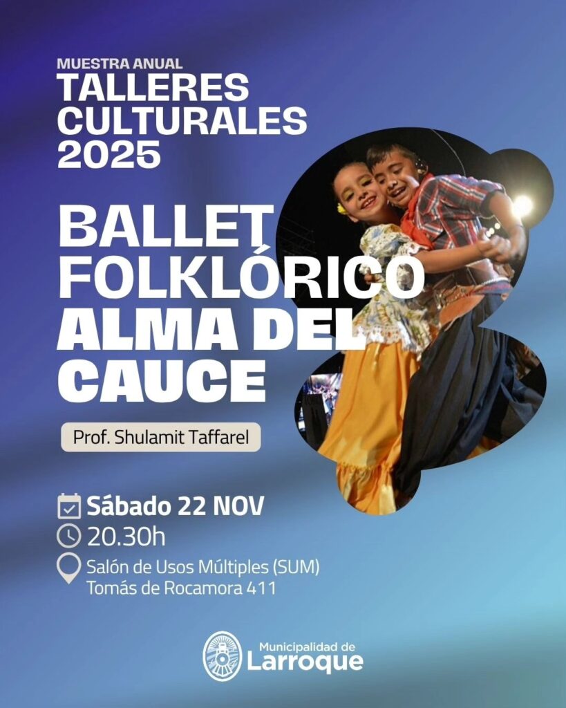 *Muestra Anual de Talleres Culturales 2025- Este viernes 21 y sábado 22 de noviembre se realiza la Muestra Anual 2025 de los Talleres Culturales de la Municipalidad de Larroque. Cada uno de los espacios pondrá a consideración del público la significativa presentación final de los talleres, espacios donde alumnos y docentes comparten trabajos, proyectos, capacitación y aprendizajes desarrollados a lo largo de este ciclo.