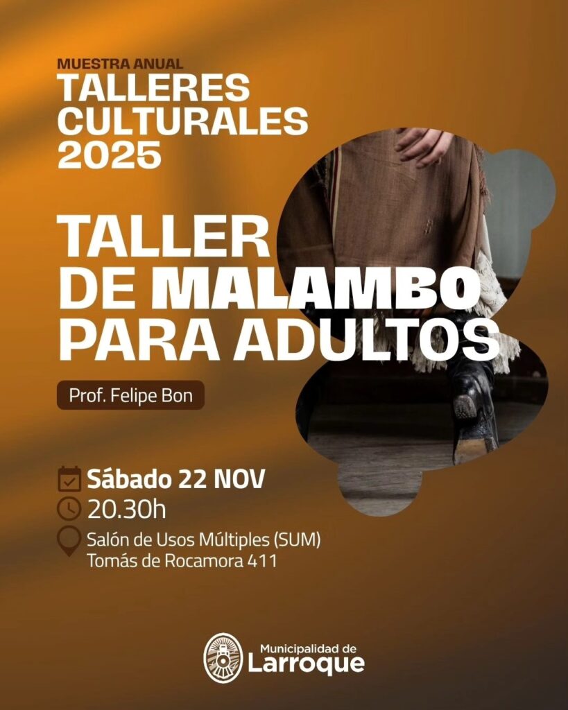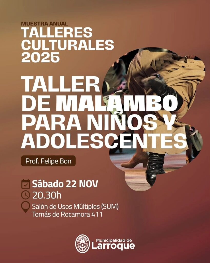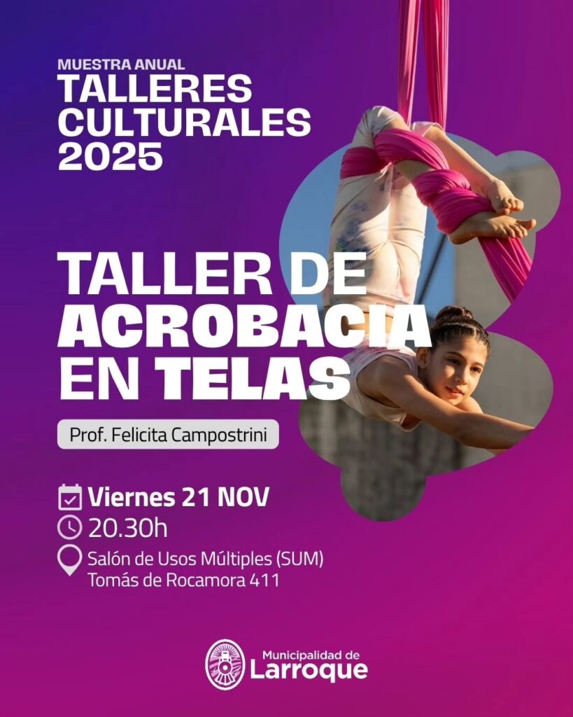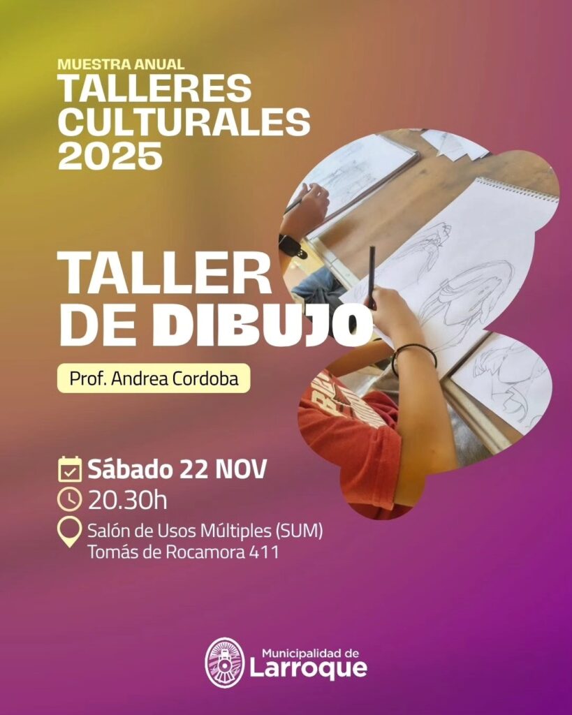 *Muestra Anual de Talleres Culturales 2025- Este viernes 21 y sábado 22 de noviembre se realiza la Muestra Anual 2025 de los Talleres Culturales de la Municipalidad de Larroque. Cada uno de los espacios pondrá a consideración del público la significativa presentación final de los talleres, espacios donde alumnos y docentes comparten trabajos, proyectos, capacitación y aprendizajes desarrollados a lo largo de este ciclo.