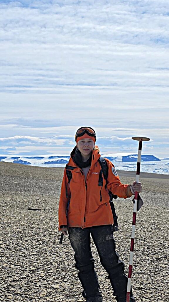 *Josefina Taffarel Benedetti joven larroquense, flamante licenciada en Ciencias Geológicas egresada de la UBA, cumplió un sueño al viajar a la Antártida Argentina con fines de estudio.